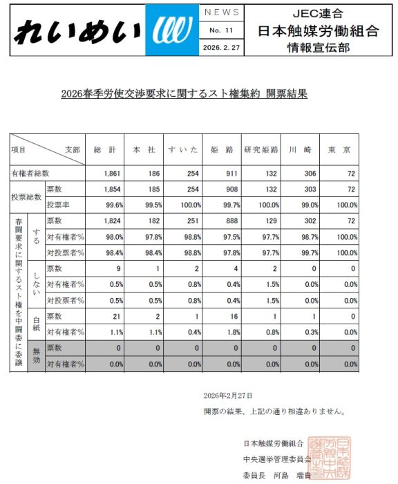 れいめいNo.9 2026春季労使交渉 要求書提出 & スト権投票のお知らせ