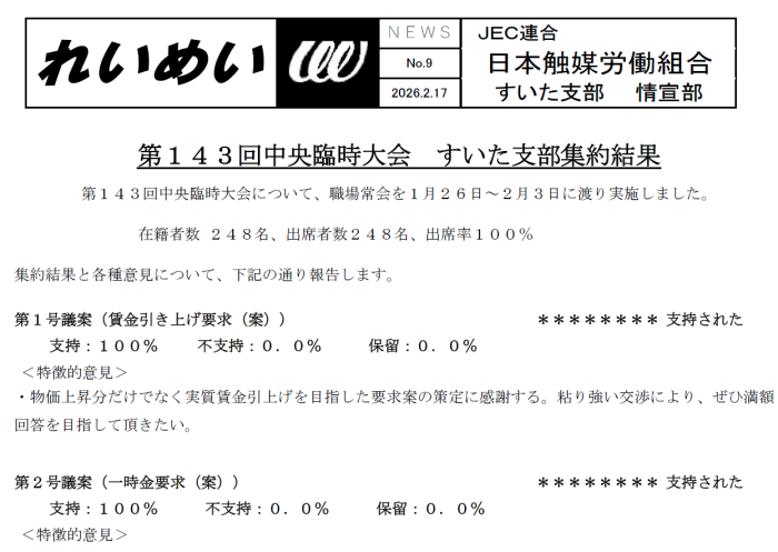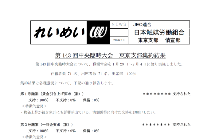 【本社支部】第143回中央臨時大会 支部集約